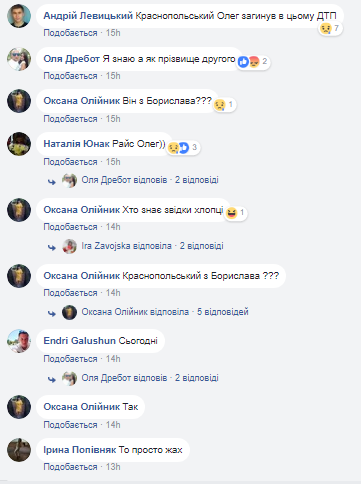 Пользователи в соцсети назвали имена погибших: Олег Краснопольский и Олег Райс. Отмечают, что, скорее всего, они были из Борислава.